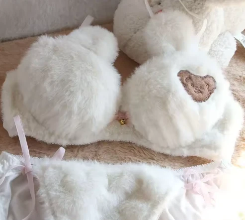 Embrace the ultimate blend of comfort and "Kawaii" style this season. Designed specifically for students and those with smaller chest sizes, our Plush Bear Cub Underwear Set provides the warmth of thickened fabric without the discomfort of traditional underwires.